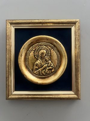 Maica cu Pruncul – icoană din ceramică și foiță aurie